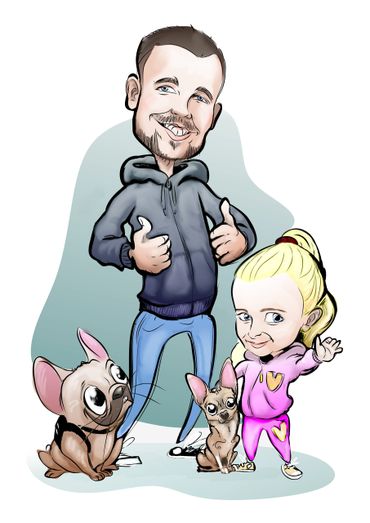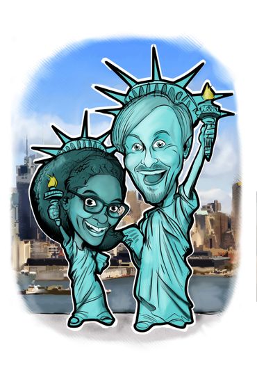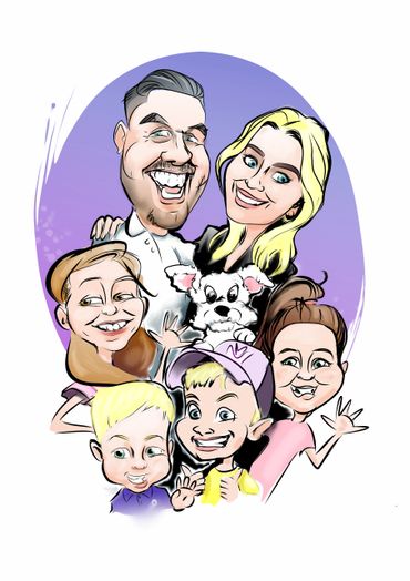 I pride my self on my artistic versatility. From high-end cartoon portraits to whimsical caricatures, my work captures the essence of the subjects beautifully. I love taking my time creating the caricatures in the studio and also on the fly live events and weddings.
